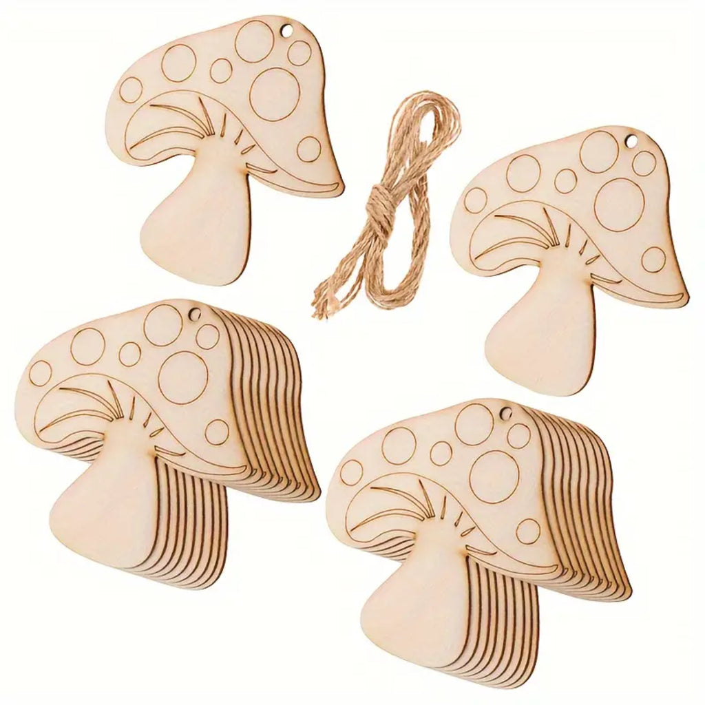 10 wooden mushroom cutouts made of plywood – Creative craft shapes for every occasion