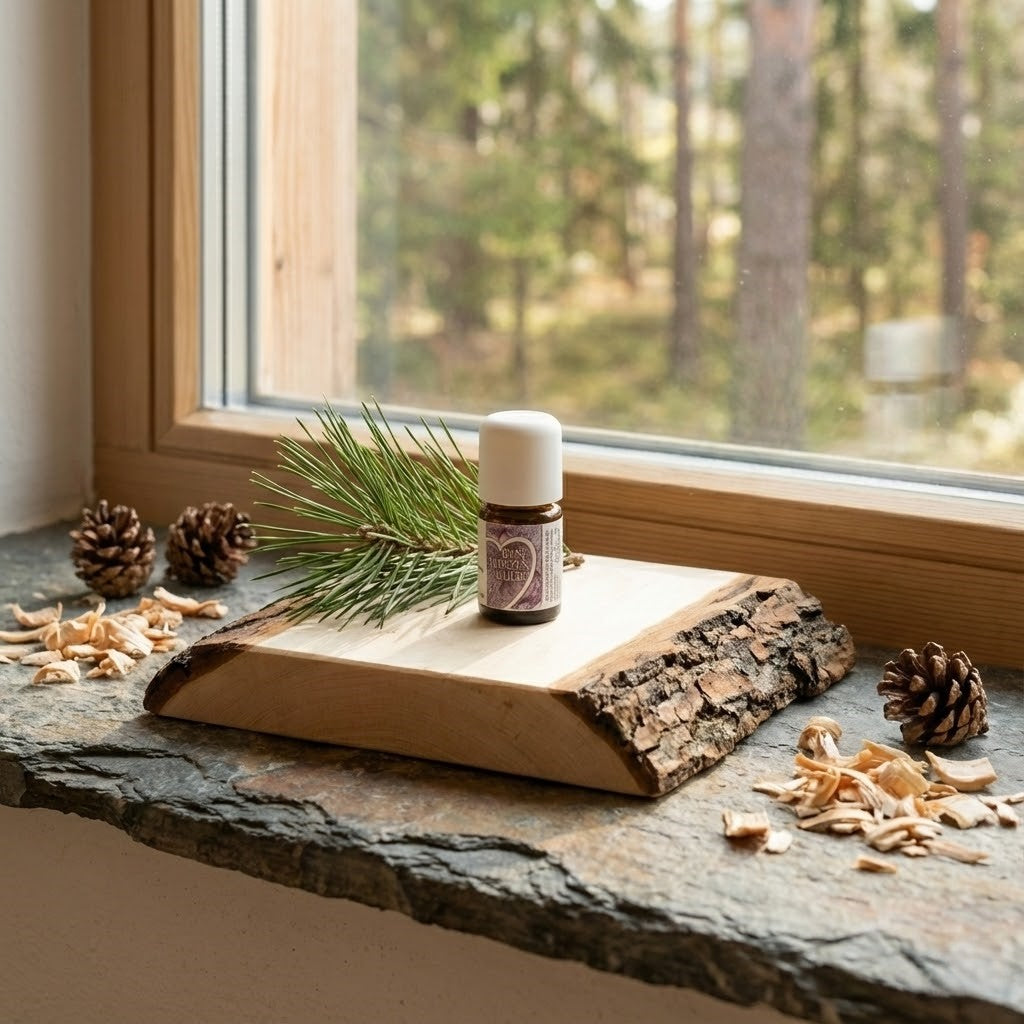 The enclosed 5 ml of organic Swiss pine oil is extracted from Swiss pine wood, needles, and branches using gentle steam distillation. It comes exclusively from Tyrolean Swiss pine and, after distillation, is bottled without additives in dark amber glass bottles to best preserve its quality and fragrance. For a more intense fragrance, one or two drops of the oil can be placed on the Swiss pine board.