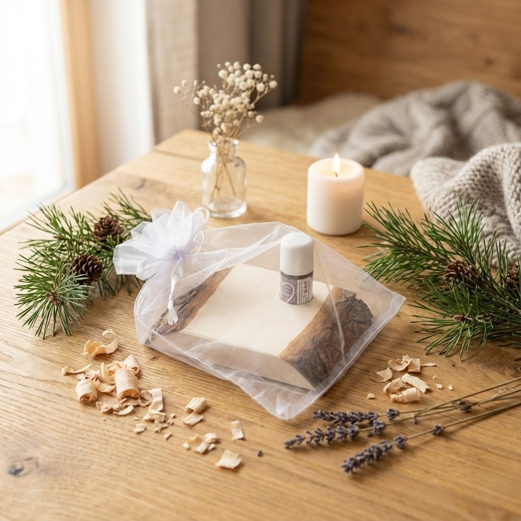• Set contents: Swiss pine board, organic Swiss pine oil, organza bag