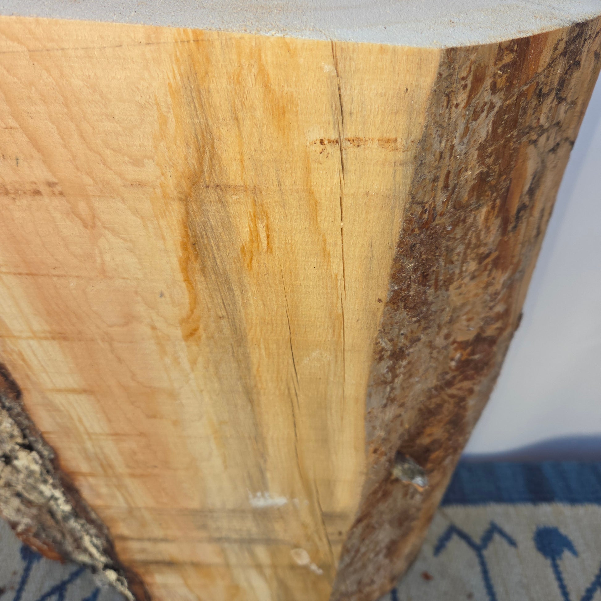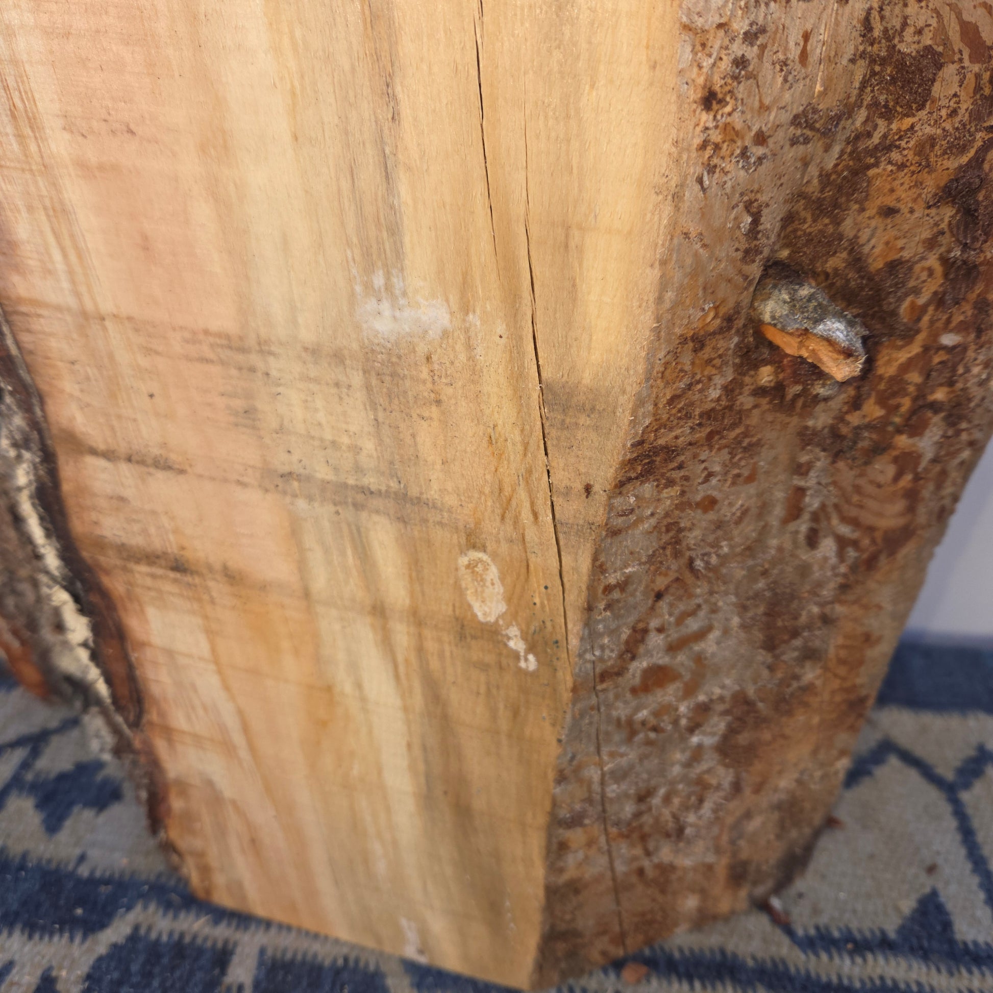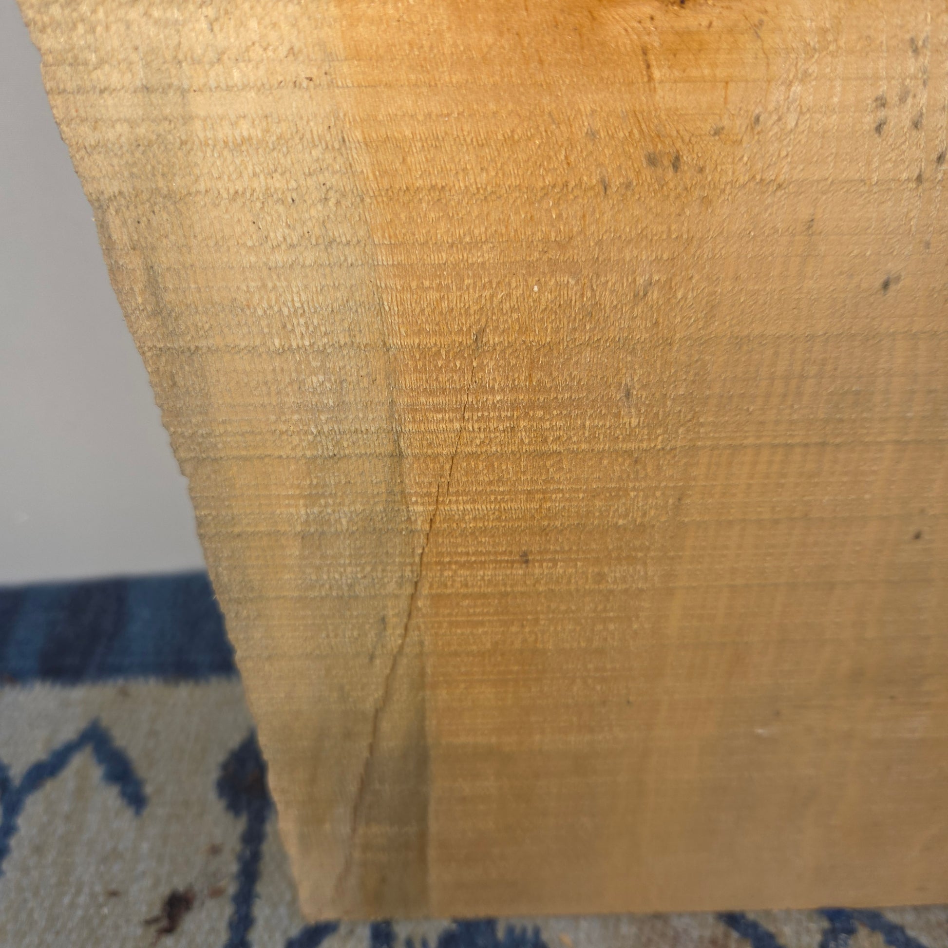 Kleinere Risse oder natürliche Merkmale können vorkommen und stellen keinen Qualitätsmangel dar. Dieses Einzelstück weist bereits einige sichtbare Risse auf (siehe Bilder), was den natürlichen Charakter des Holzes unterstreicht.